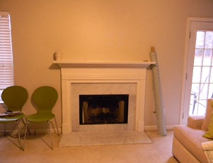 I thought about the accent wall being the fireplace wall, but that wall goes into the kitchen...What do I do about that?!